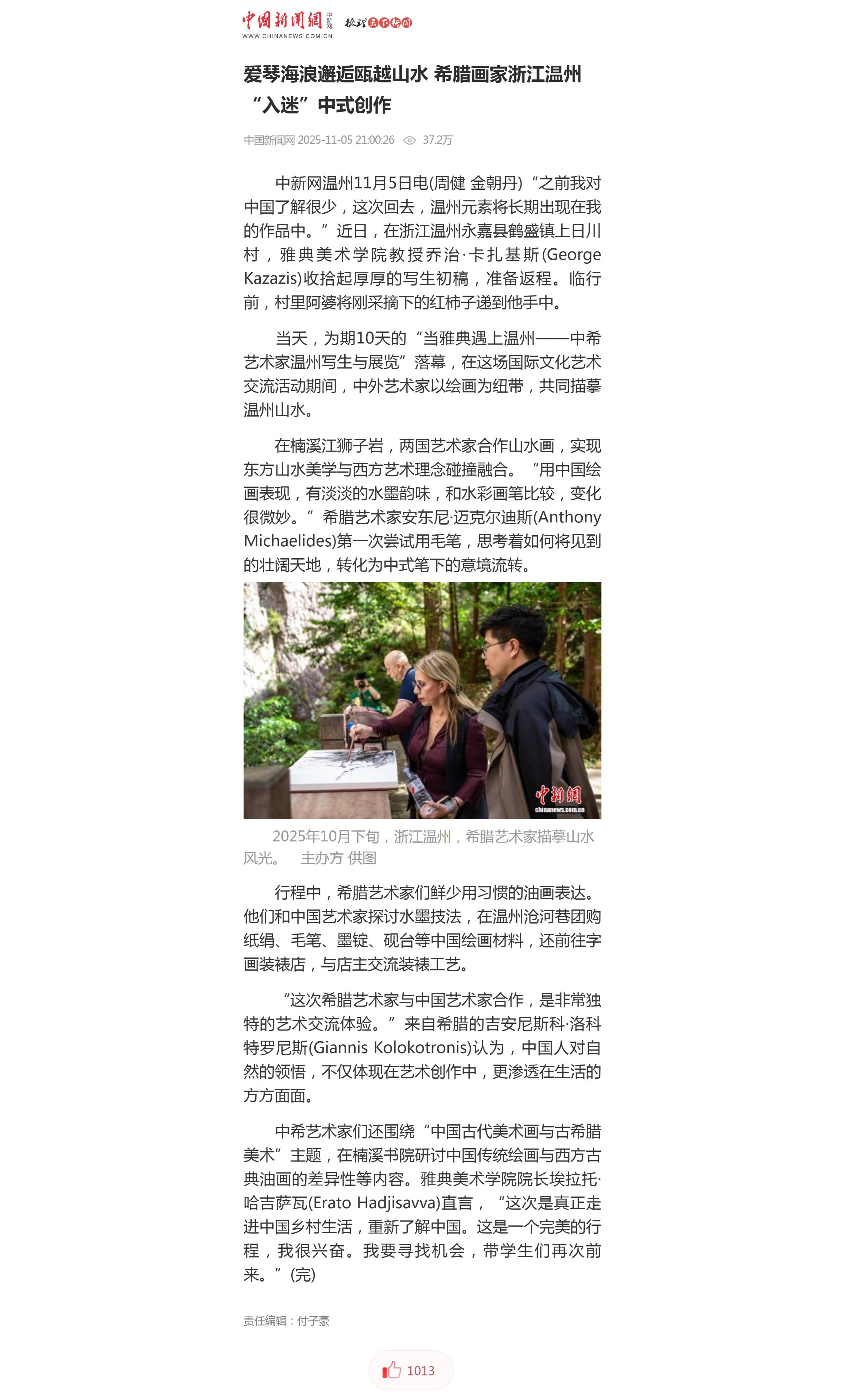 爱琴海浪邂逅瓯越山水 希腊画家浙江温州“入迷”中式创作