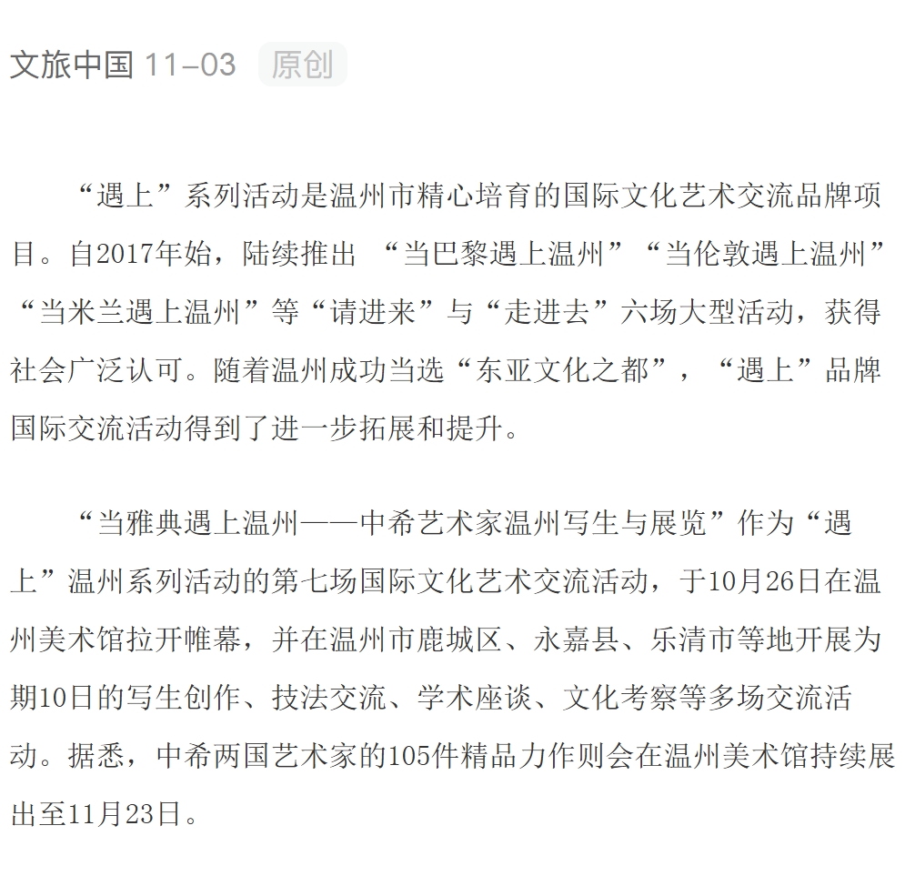 “当雅典遇上温州——中希艺术家温州写生与展览”系列国际文化艺术交流活动在温州美术馆举办