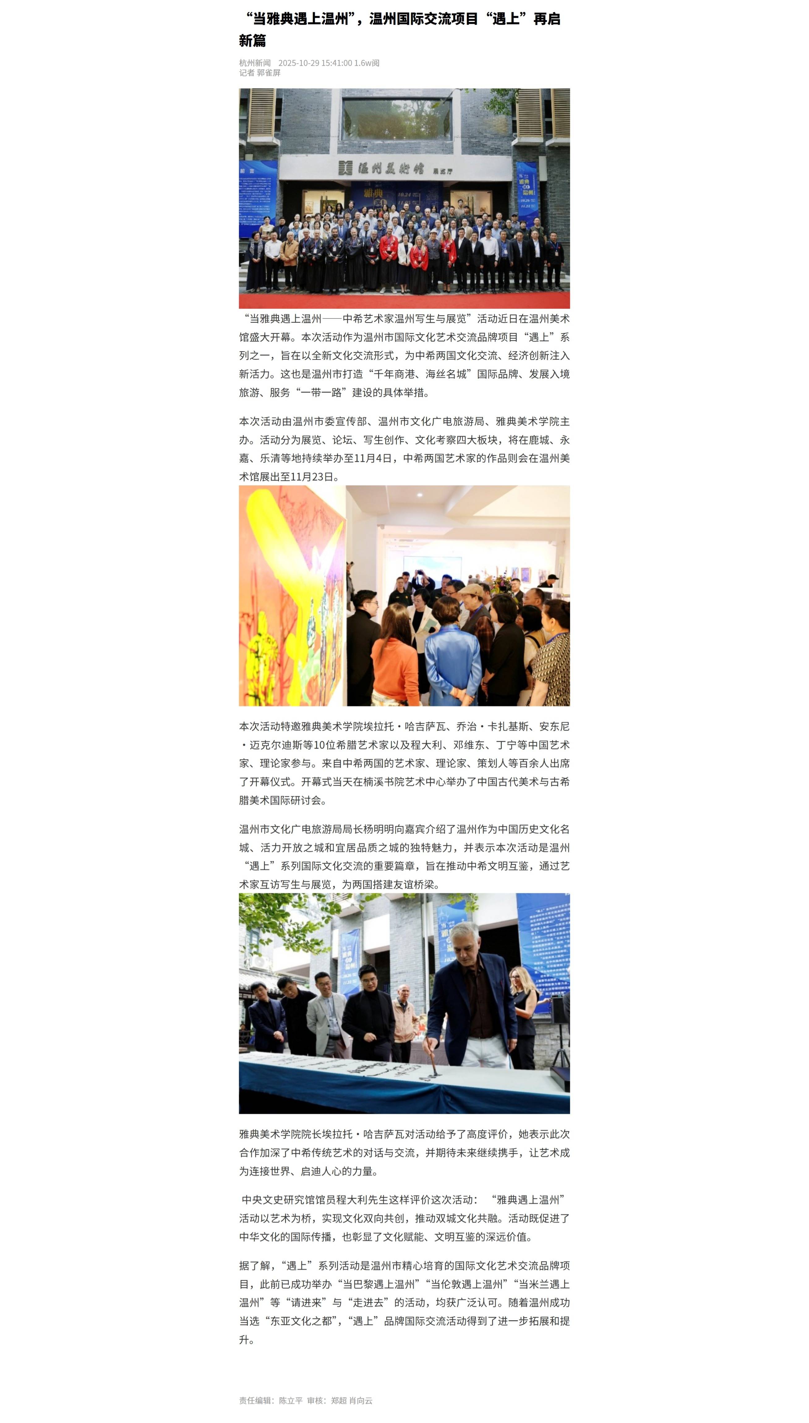 “当雅典遇上温州”,温州国际交流项目“遇上”再启新篇
