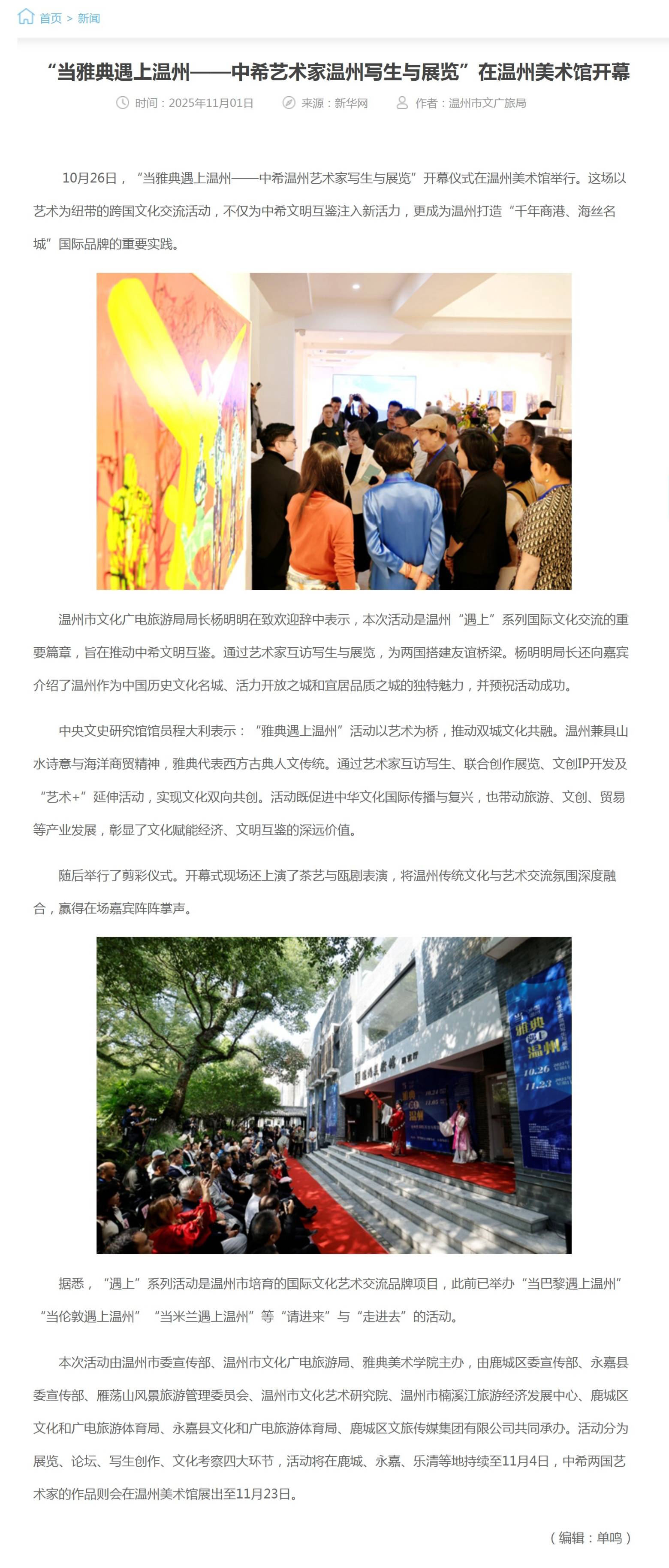 文明互鉴 “当雅典遇上温州——中希温州艺术家写生与展览”在温州启幕
